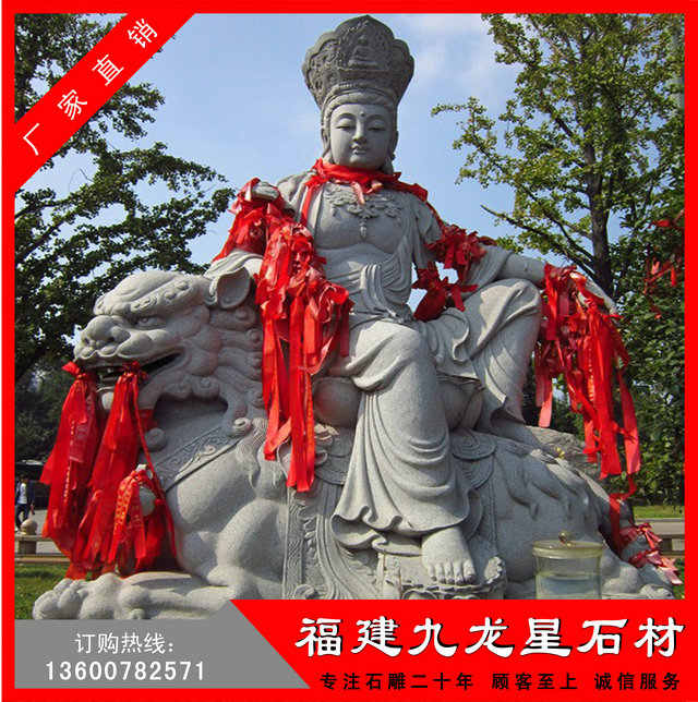 石雕文殊菩薩智能、辯才第一,為眾菩薩之首,是象征佛陀智能的菩薩,稱“大智”。在大乘佛教中,文殊菩薩有很高的地位。他是眾菩薩之首,被認為是如來“法王”之子,因此常稱他為“法王子”。他是智慧的化身,經常協同釋迦宣講佛法。在《維摩詰經》中,他又代表釋迦佛,率領弟子們前去探望病中的維摩詰,并與維摩詰反復討論大乘佛教教義,宣說大乘佛法玄理。