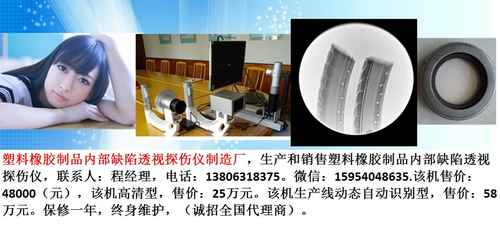 塑料橡膠制品內部金屬工件缺陷檢視探傷儀制造廠,生產和銷售塑料橡膠制品內部金屬工件缺陷檢視探傷儀,聯系人:程經理,電話:13806318375/微信:15954048635/QQ2637013461。.該機售價:48000(元),該機高清型,售價:25萬元。該機生產線動態自動識別型,售價:58萬元。保修一年,終身維護,(誠招全國代理商)。該機無需暗室,在明室里一按按鈕,就能看清塑料橡膠制品內部金屬工件缺陷,該機重僅3.5公斤,一個手就提得動,該機每次工作設置50秒定時,到時自動關閉,用時再打開即可,每天可工作約2-3個小時,每連續使用半個小時,需停一個小時左右降溫,以保證機器的使用壽命。每次標配是2-3只射線源,輪換使用,可保證機器連續工作。更多內容,請登陸公司博客:http://blog.sina.com.cn/suliaoxiangtou1,